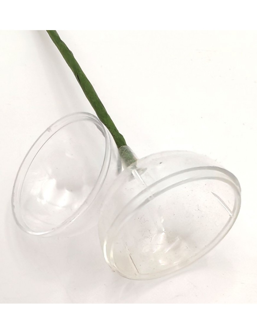 Műanyag tartó bon bonok csokorba kötéséhez zöld színű, drótos szárral.