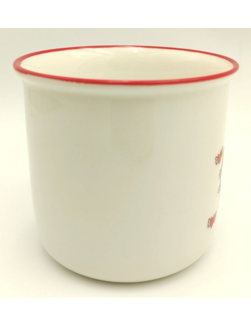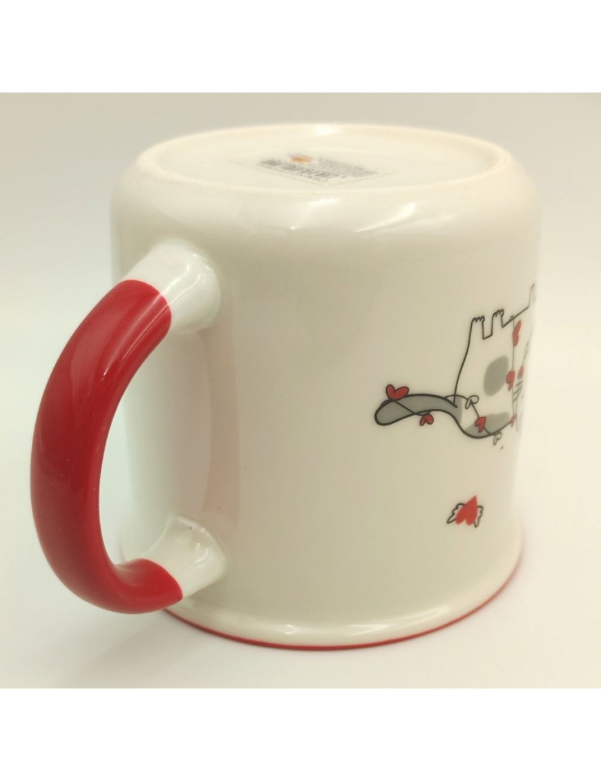 Kerámia bögre piros-fehér színben cicás, szerelmes mintával.