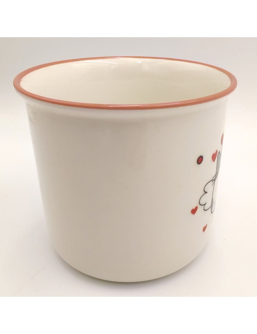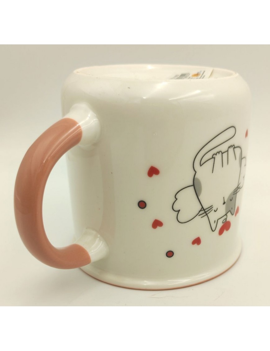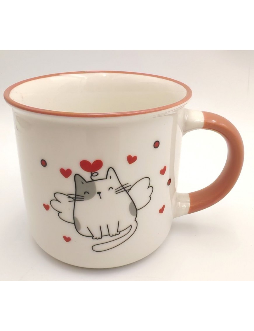 Kerámia bögre piros-fehér színben cicás, szerelmes mintával.