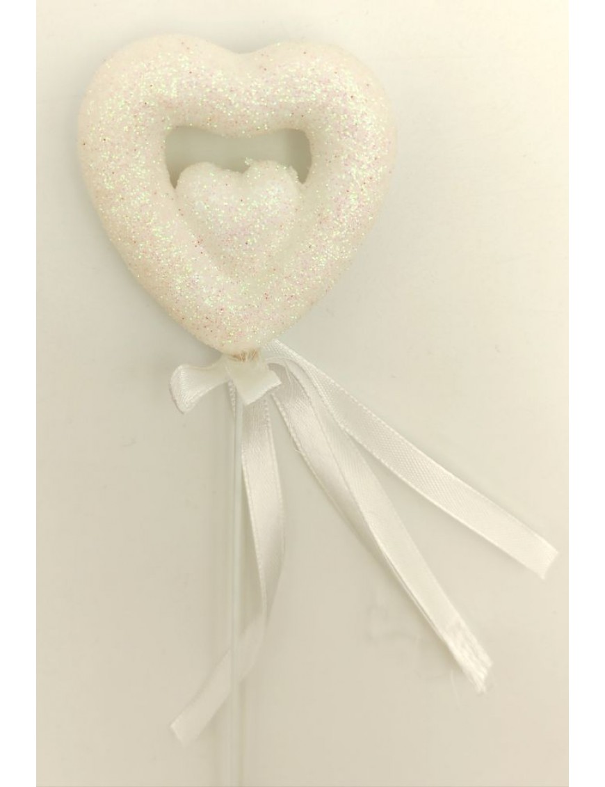 Fehér, csillogós szív betűző masnival.