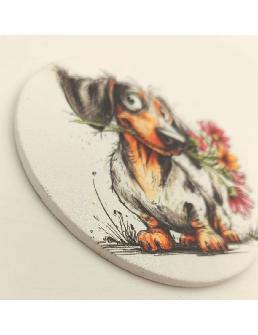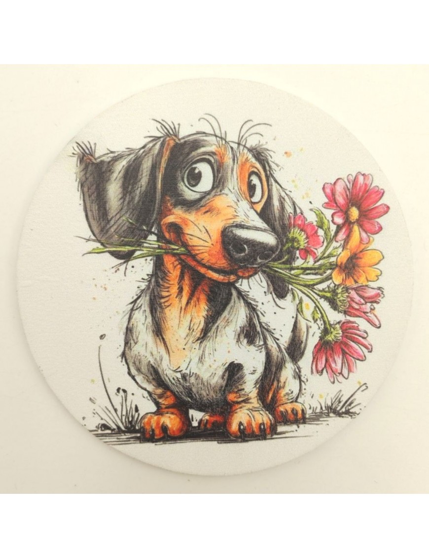 Nyomtatott dekorkarton tábla tacskó mintával.