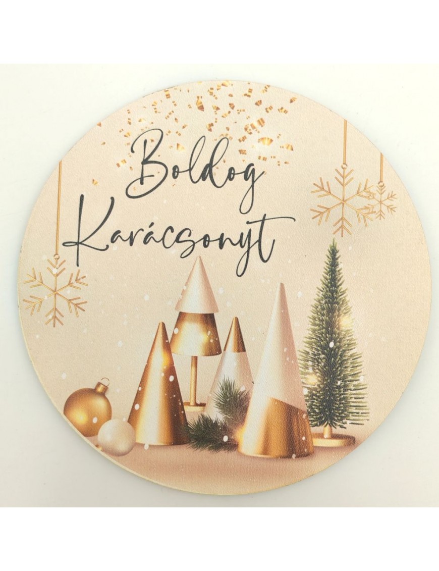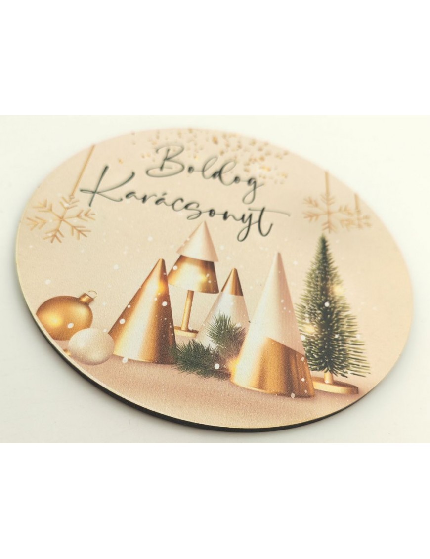 Nyomtatott fa tábla karácsonyi mintával, felirattal.