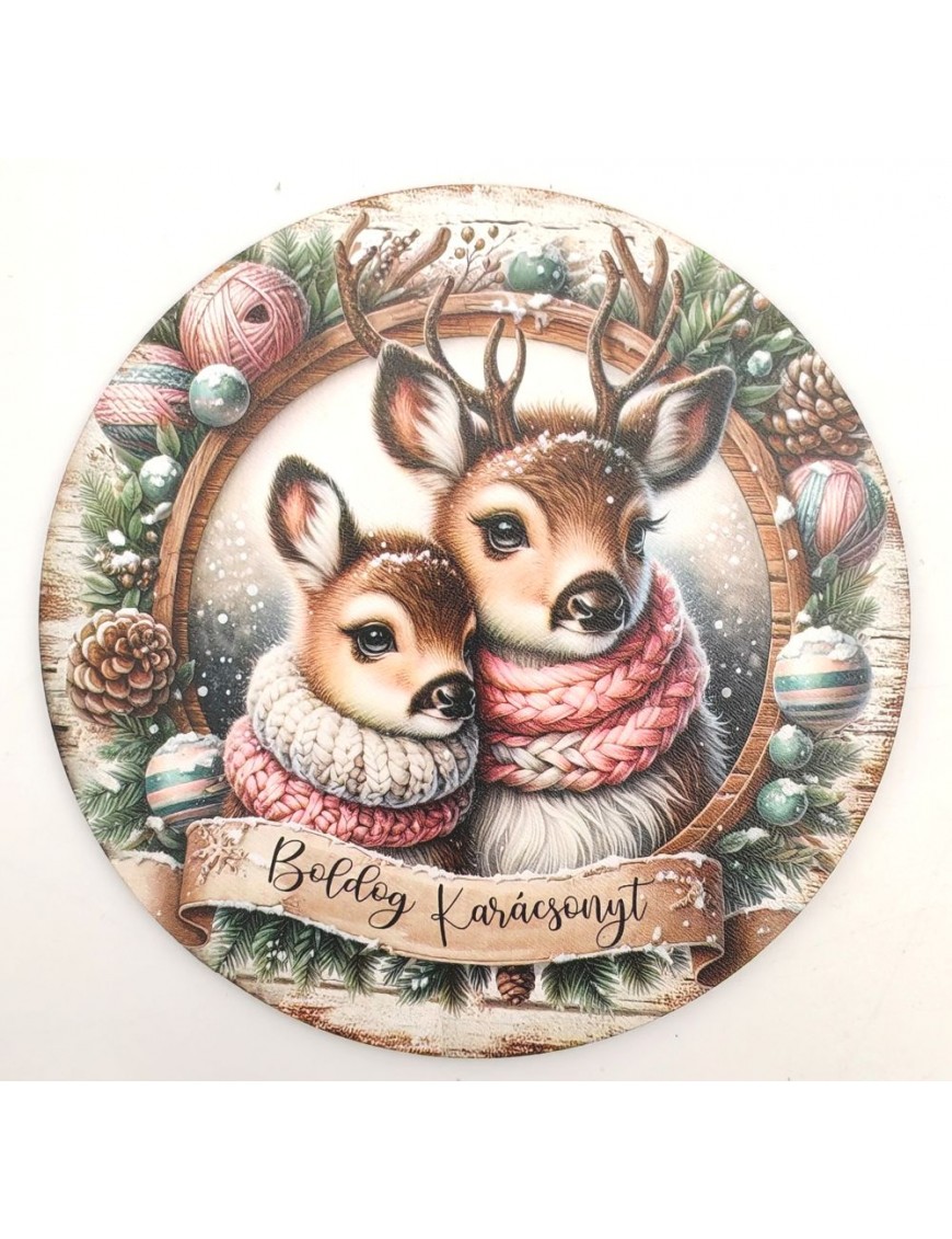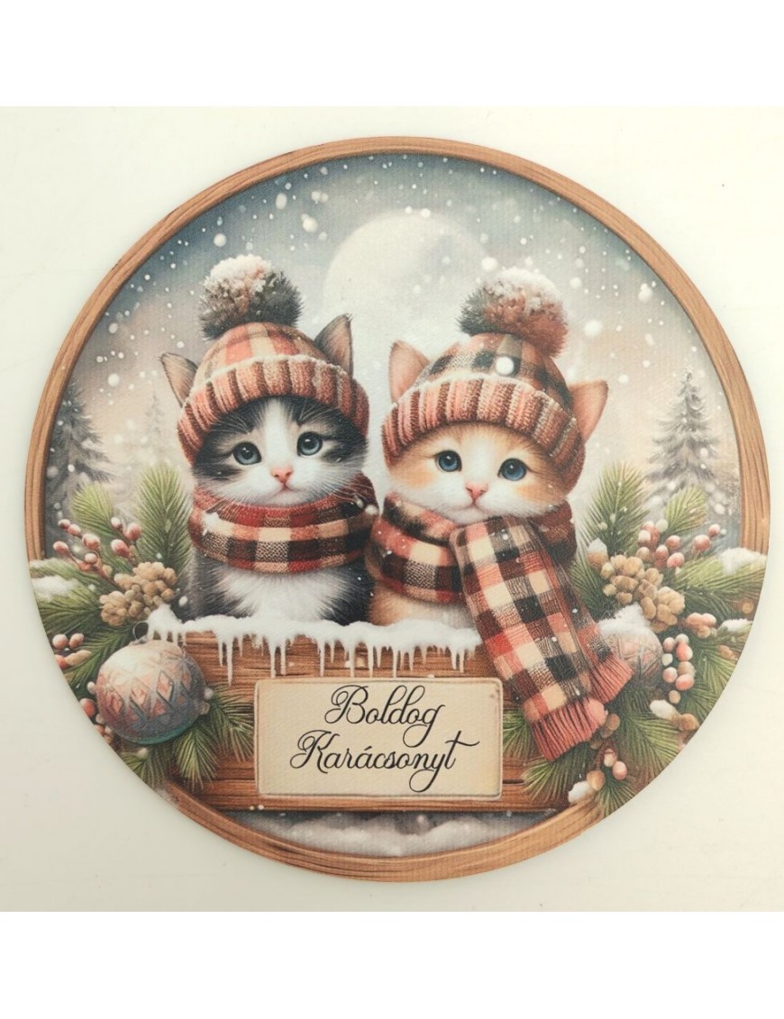 Nyomtatott fa tábla többféle mintával, 13 centiméter átmérővel.