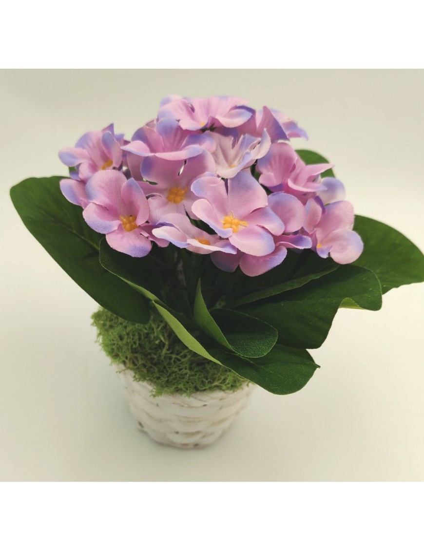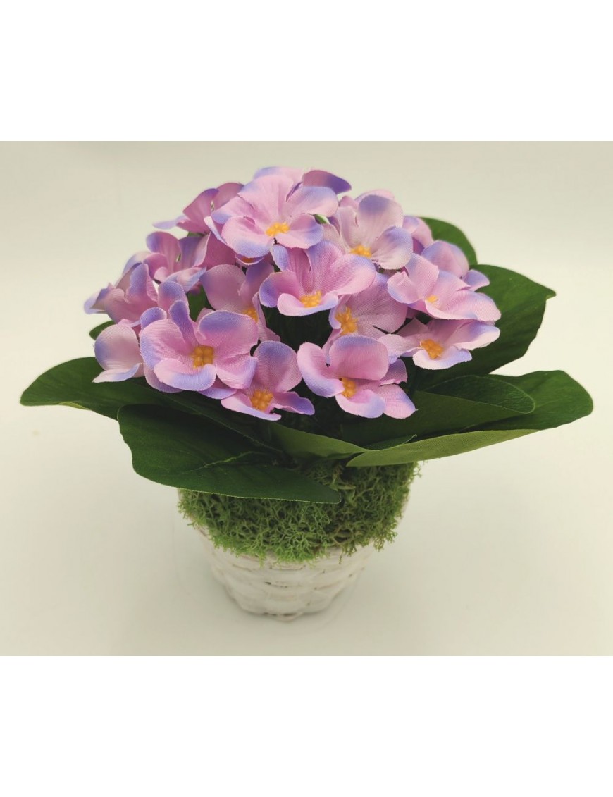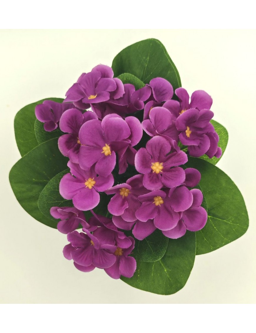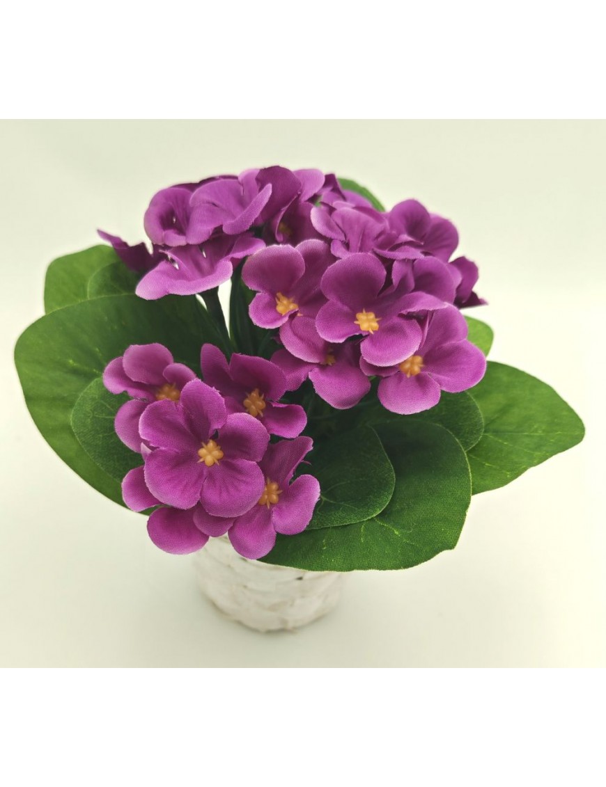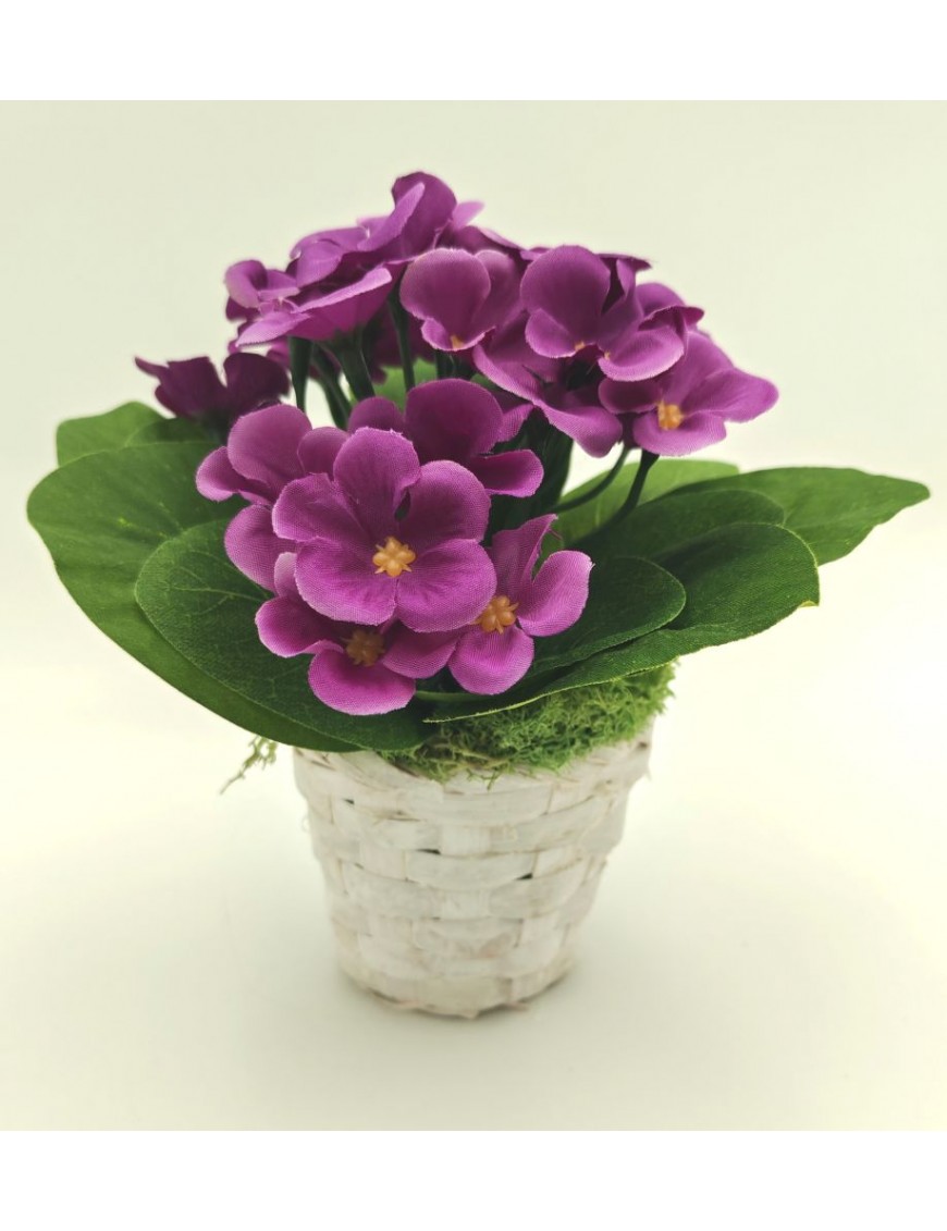 Selyem fokföldi ibolya kis fehér bambusz kaspóban világos és sötét lila változatban.