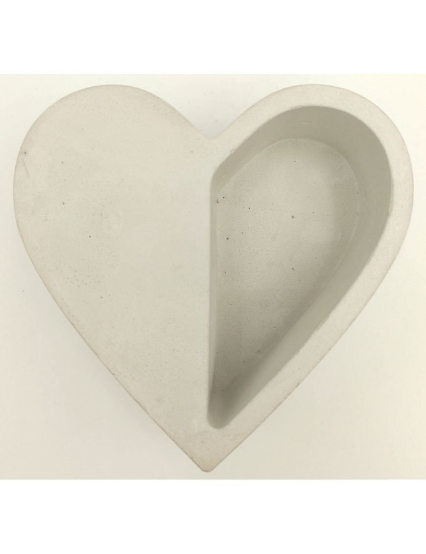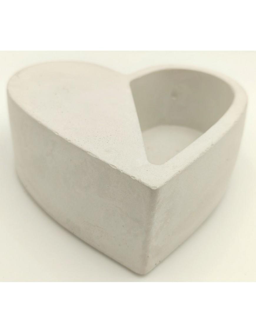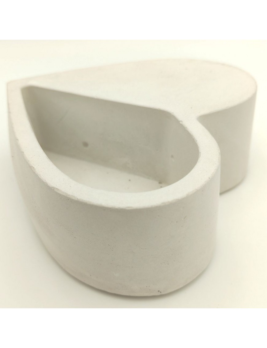Gipsz-cement keverékből készült kaspó szív alakban, a fele díszíthető.