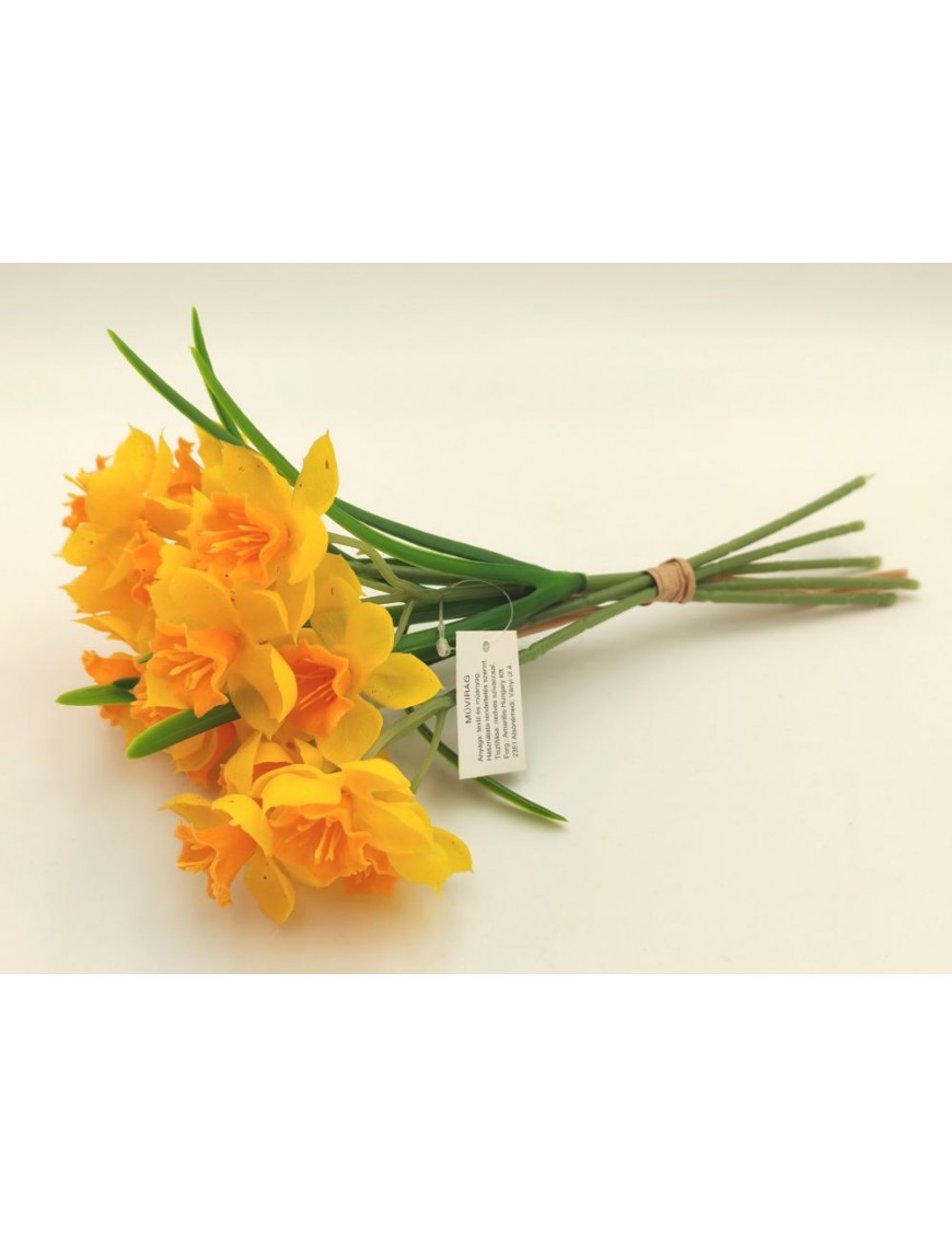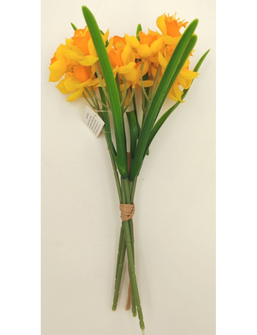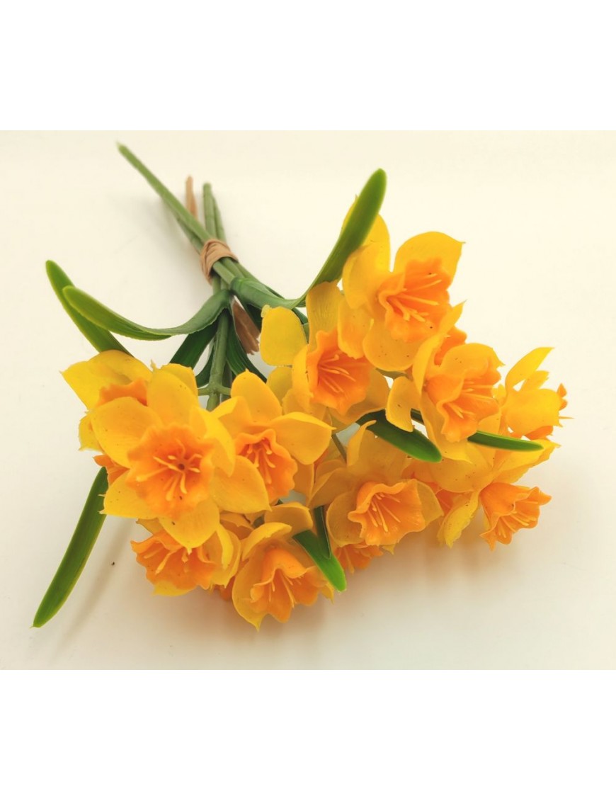 Gumiból készült, élő hatású nárcisz köteg narancsos cirmos színben, 5 szálas.