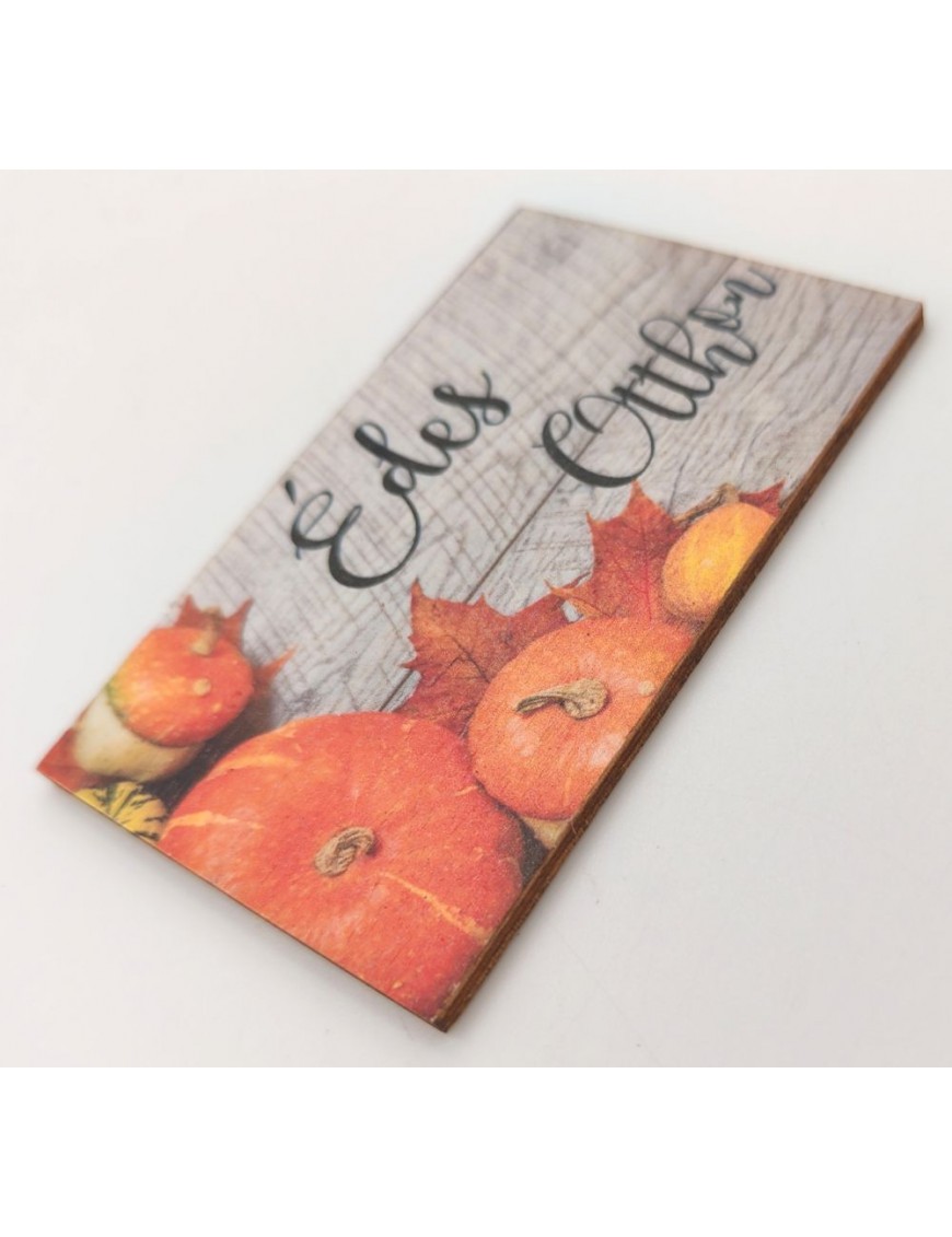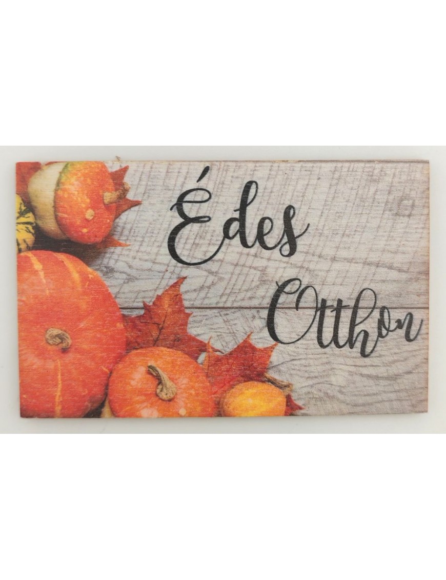 Őszi mintájú fa tábla Édes Otthon felirattal.