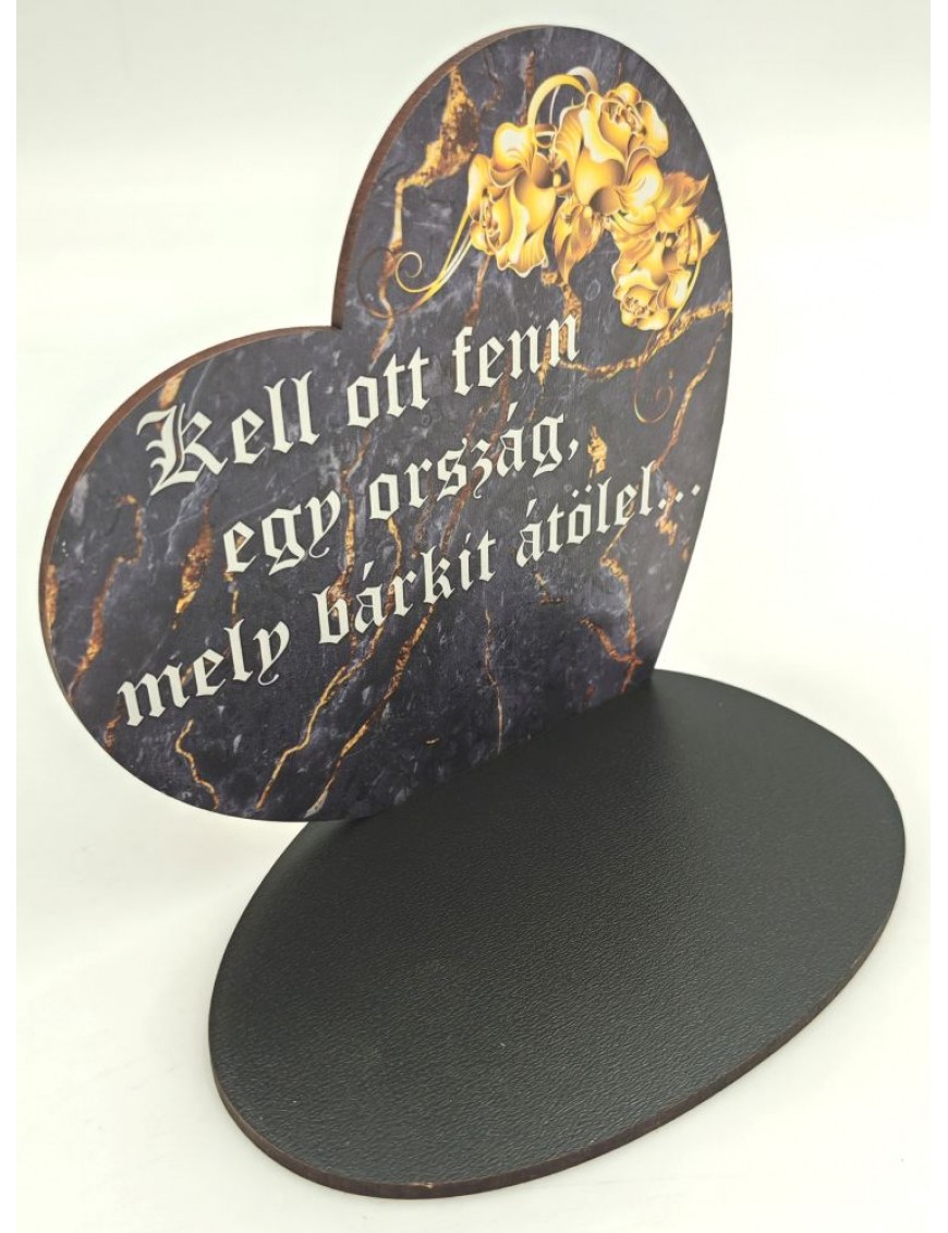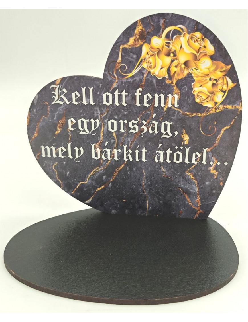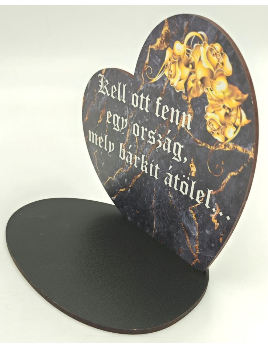 Szív alakú, talpas nyomtatott tábla felirattal: