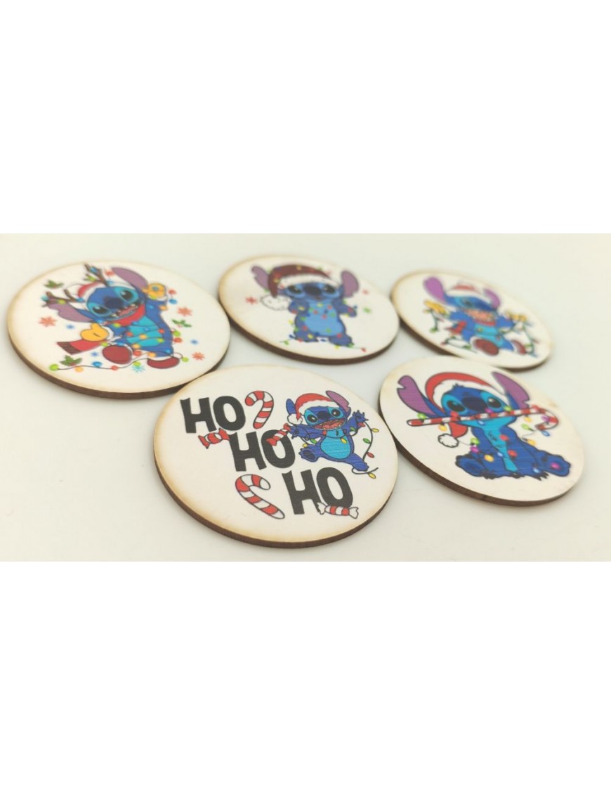Kör alakú fa táblák Stitch mintával, 5 darabos szettben.