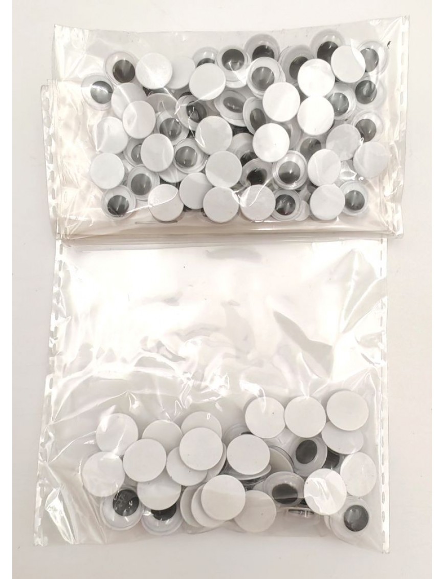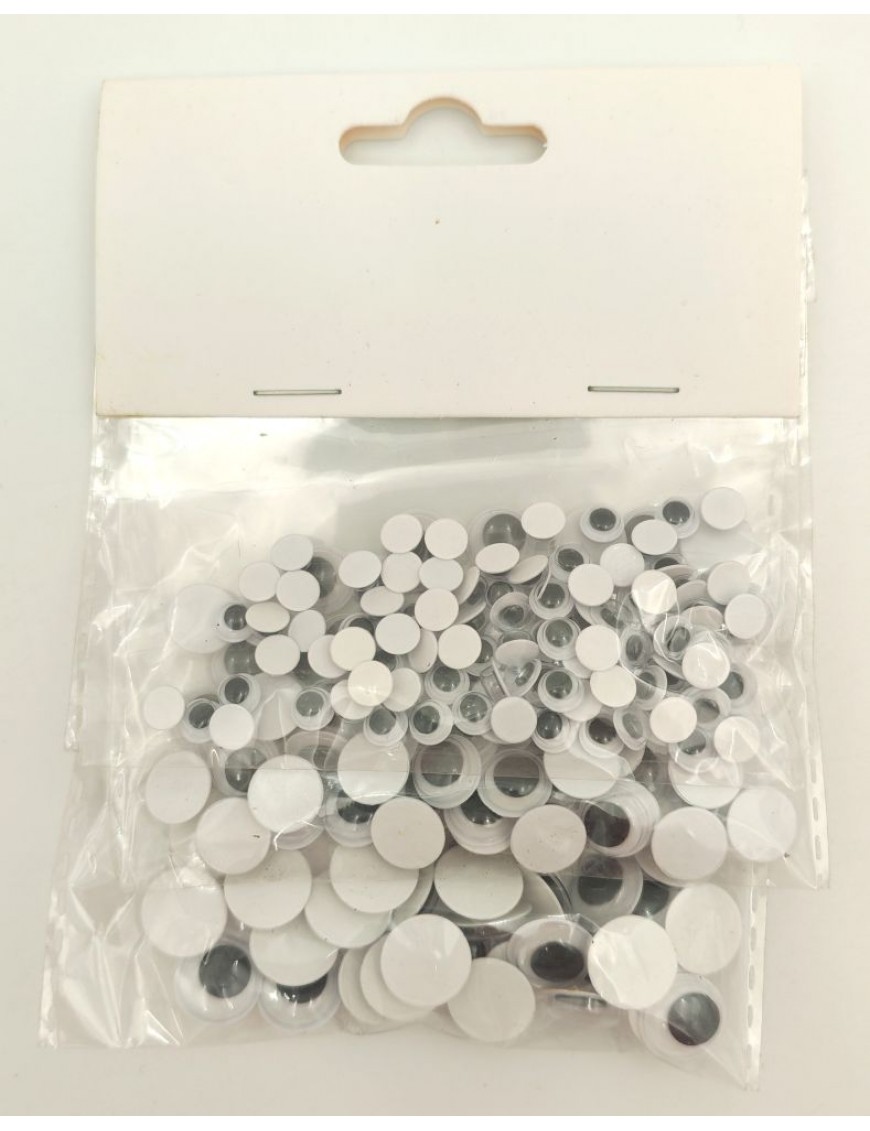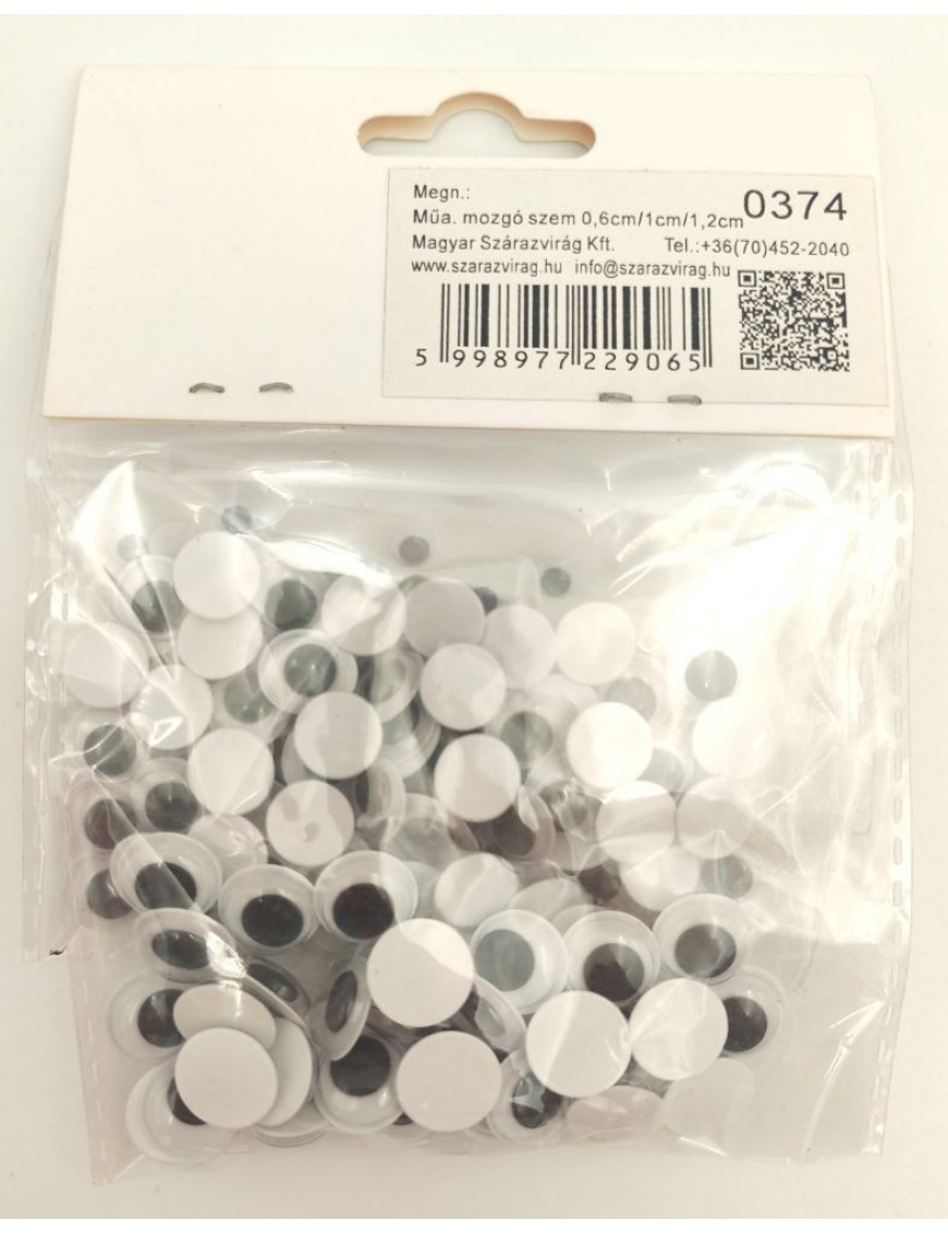 Kreatív célra használható mozgó szemek csomagban, három méretben: 0,6, 1, 1,2 mm átmérővel.