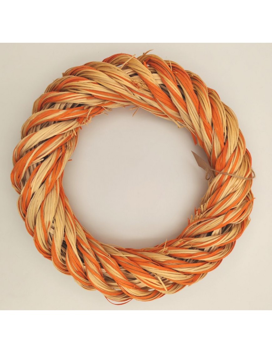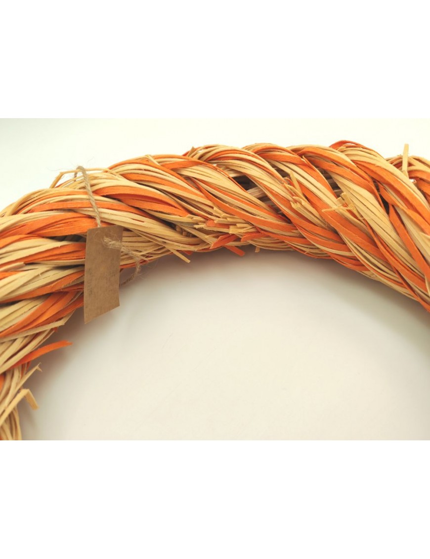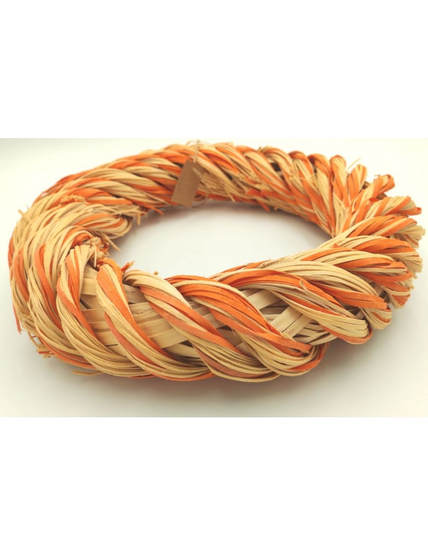 Narancssárga-natúr színű, vékony, lapos fa szálakból font alap 36 centiméteres átmérővel.