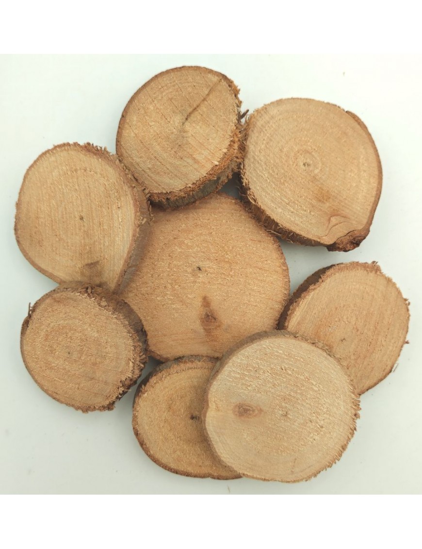 1 centiméter vastagságú natúr faszeletek kis csomagban, 3-9 centiméteres átmérővel.