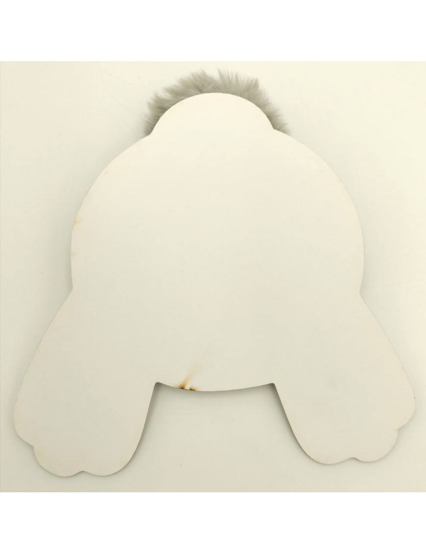 Dekorkartonra nyomtatott, szürke pompomos nyuszipopó tábla kopogtatók közepére.