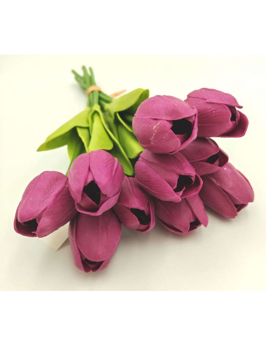 Polifoamból készült, élő hatású tulipán köteg 10 virággal, többféle színben.