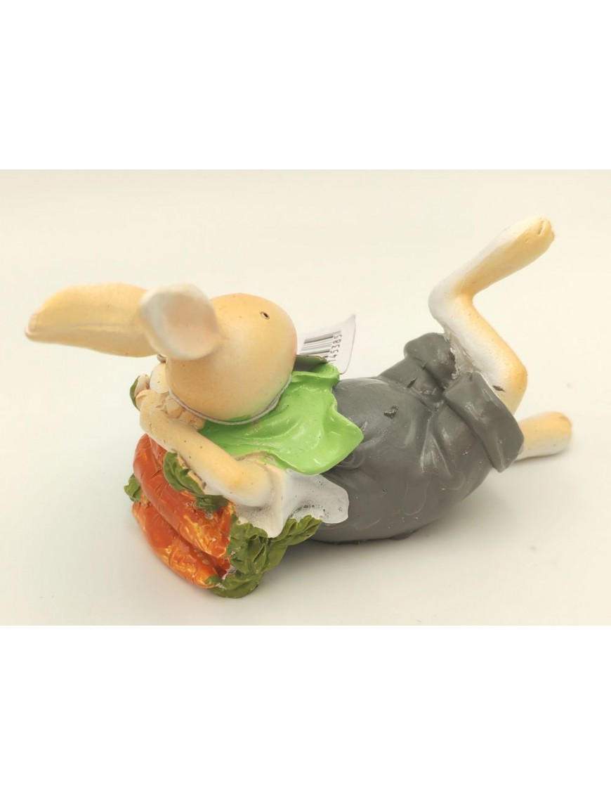 Kerámiából készült, répákon fekvő nyuszi figura.