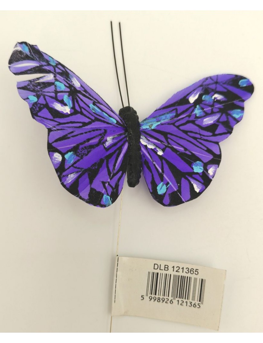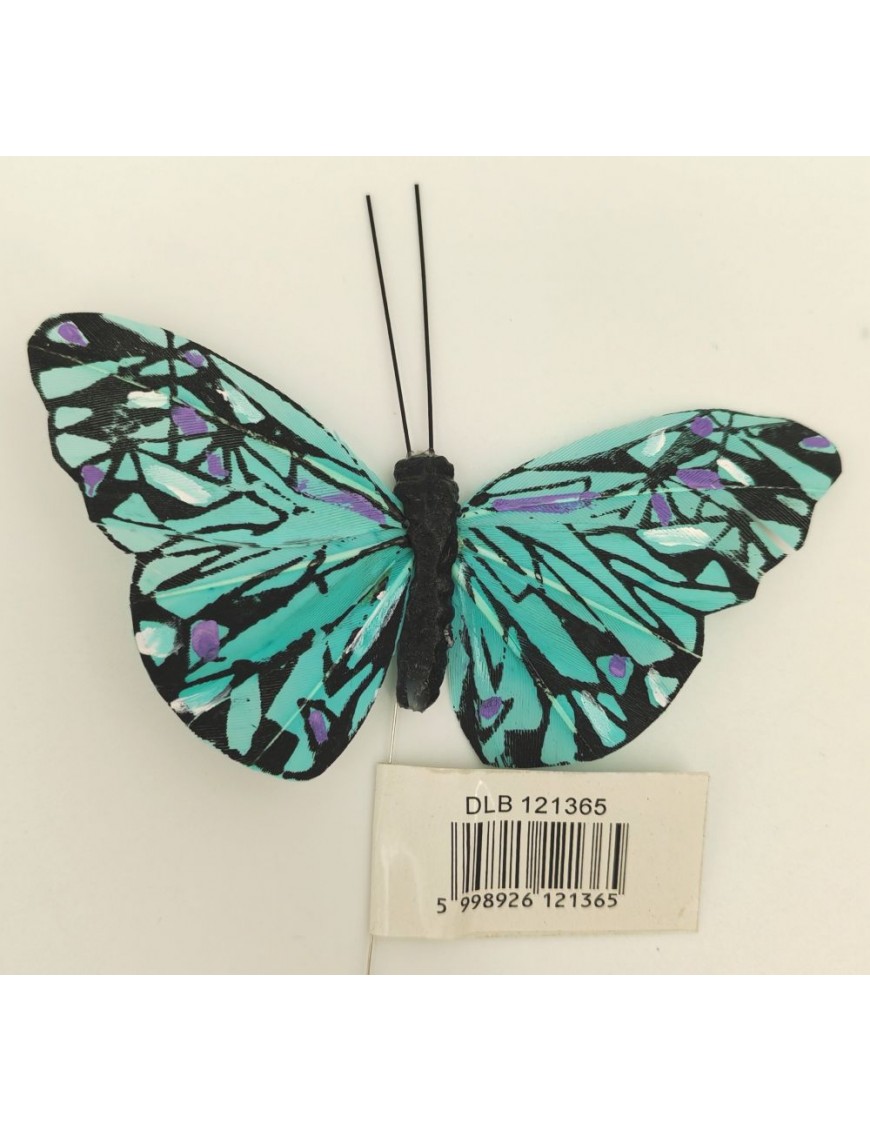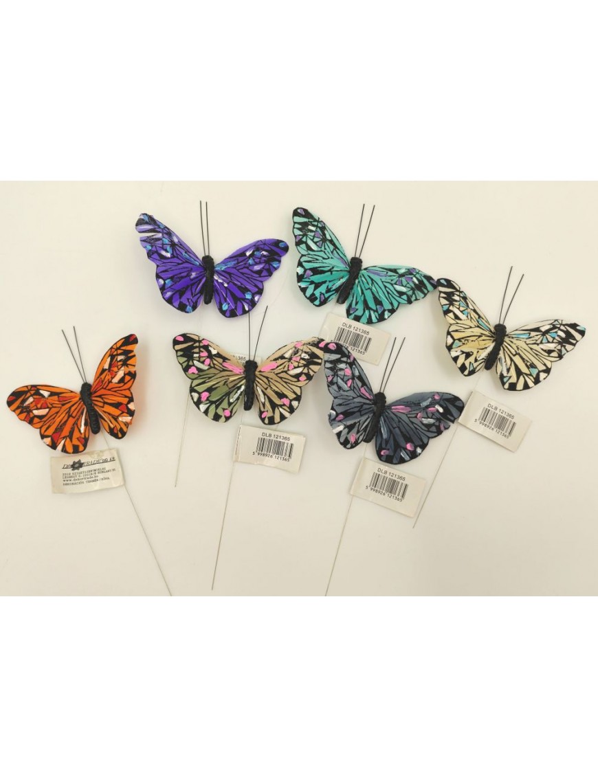Pillangók többféle színben, drótra rögzítve.