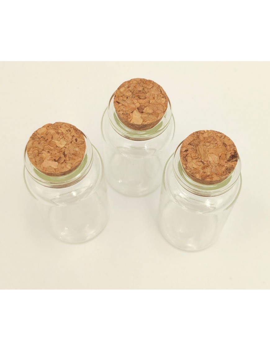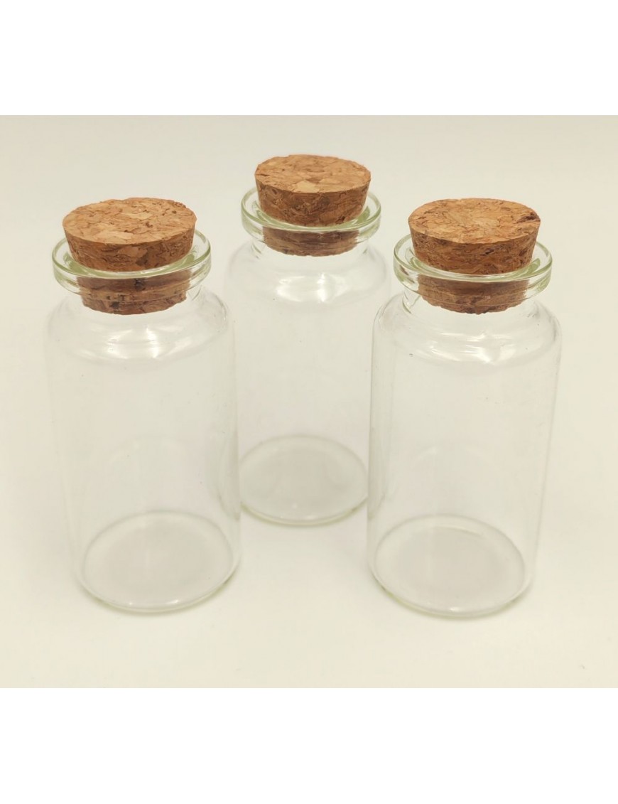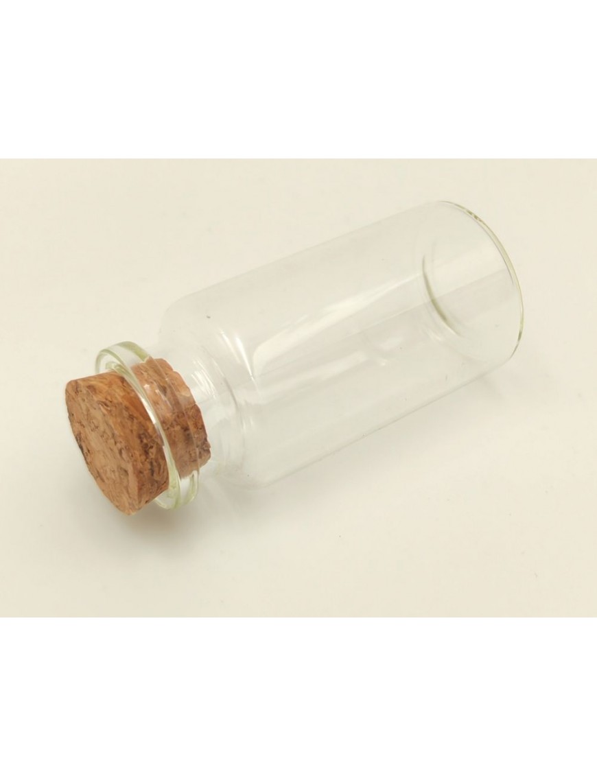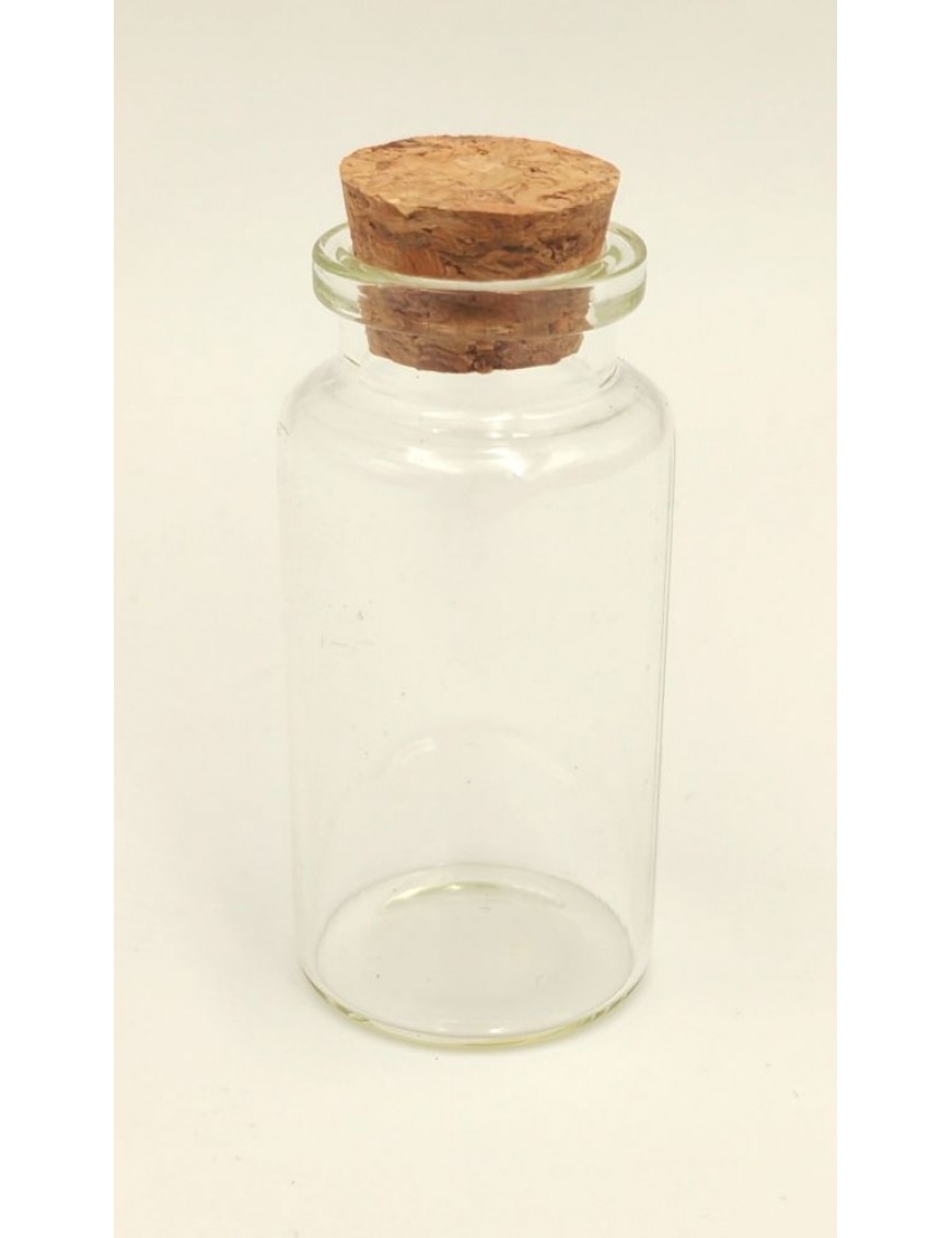 6,5 cenrtiméter magasságú üvegcse parafa dugóval.