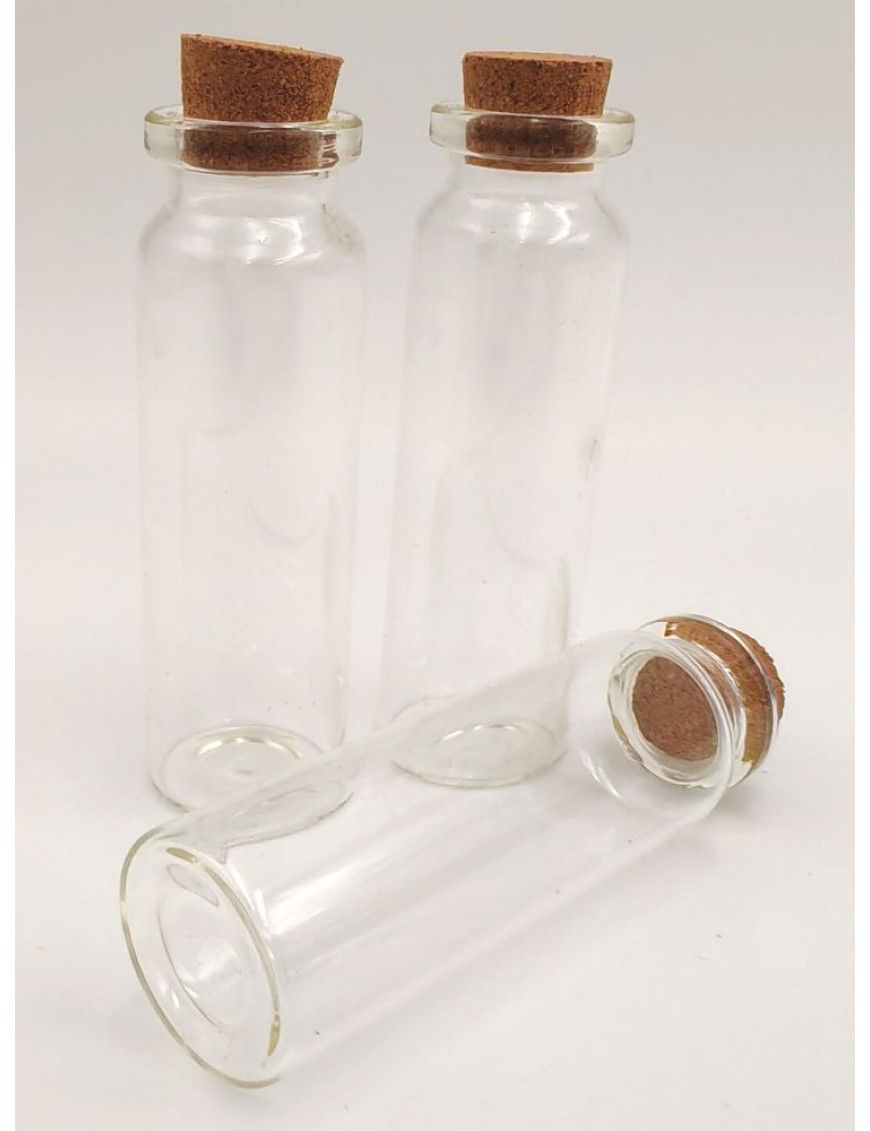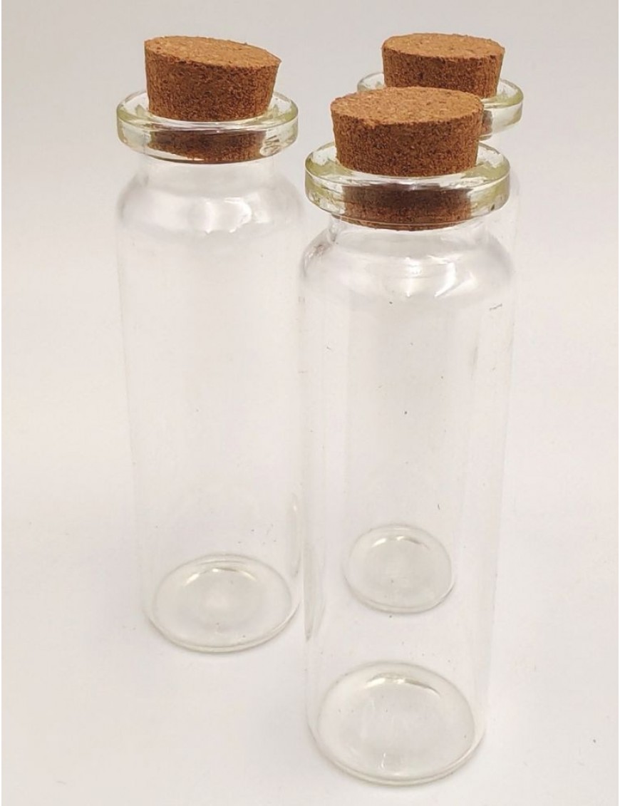 Üvegcse 7,5 centiméteres magassággal, parafa dugóval.